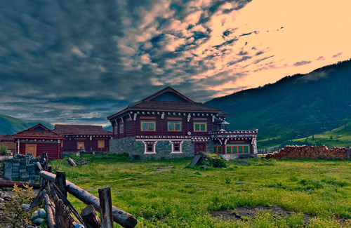 山南地区农村民居常利用外廊设置开敞式起居空间,许多农村居民建筑,无论是居室、厨房、贮藏、庭院的设计,还是牛棚、猪圈、厕所的布置,功能关系都较合理。有的民居巧妙地利用山坡地,把建筑下层处理成牲口圈,上层作庭院或起居场所,使人畜分置,互不干扰,改善了卫生条件。西藏东部林区村镇民居,又别具一格,如林芝地区的民居,多独院式,由居室(兼厨房)、贮藏间、牲畜间和外廊、厕所等组成。