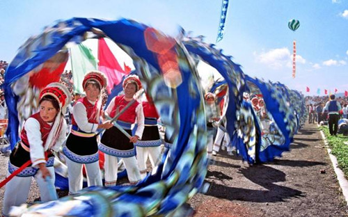 三月街是白族传统盛大节日,也是白族传统的民间物资交流和文娱活动的盛会,每年农历三月十五至二十一日在大理城西的点苍山脚下举行。