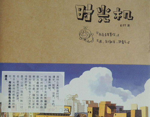 《时光机》小说封面上有这样一句歌词:如果说最后,宜静不是嫁给了大雄,一生相信的执著,一秒就崩落。这是五月天的歌,小说的名字也引用的五月天同名专辑。