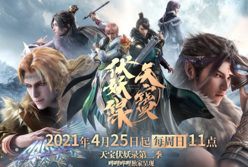 3月21日,《天宝伏妖录》的官方微博发布了一则消息:第二季终于定档啦!4月25日起,每周日中午11:00,驱魔少年再启热血旅程!根据晋江文学城作者非天夜翔同名小说改编,由bilibili出品,玄机科技承制天宝伏妖录第二季,天地万物之逆旅,光阴百代之过客。