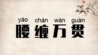 腰缠:随身携带;贯:钱串;古时穿钱用的绳索;一千文为贯。 形容钱财很多。