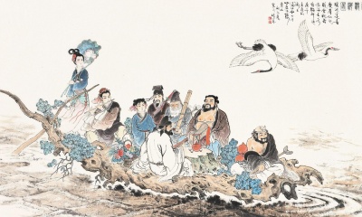 八仙是中国民间传说中广为流传的道教八位神仙。八仙之名,明代以前说法不一,有汉代八仙、唐代八仙、宋元八仙,所列神仙各不相同。至明代吴元泰《东游记》始定为:铁拐李(李玄)、汉钟离(钟离权)、张果老(张果)、吕洞宾(吕岩)、何仙姑(何琼)、蓝采和(许坚)、韩湘子、曹国舅(曹景休)。据华轩居士考证,北宋中期应铁拐李之邀在石笋山聚会时始有八仙之说。后有八仙过海,各显神通名言。