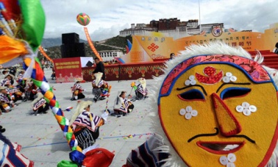 藏戏的藏语名叫“阿吉拉姆”,意思是“仙女姐妹”。据传藏戏最早由七姐妹演出,剧目内容又多是佛经中的神话故事,故而得名。 藏戏起源于8世纪藏族的宗教艺术。17世纪时,从寺院宗教仪式中分离出来,逐渐形成以唱为主,唱、诵、舞、表、白和技等基本程式相结合的生活化的表演。