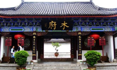 木府(英语:Mu Fu Mansion)是丽江木氏土司衙门的俗称,位于丽江古城狮子山下,是丽江古城文化之“大观园”。 整个建筑群坐西向东,是一座辉煌的建筑艺术之苑。 纳西族人原来没有汉族的姓氏,朱元璋建立明王朝后,远在滇西北丽江纳西族土司阿甲阿得审时度势,于公元1382年“率从归顺”,举人臣之礼,此举大获朱元璋赏识,朱将自己的姓去掉一撇和一横,钦赐其汉姓“木”,从此纳西传统的父子连名制得以改成汉姓名字。