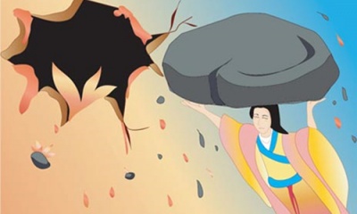 女娲补天,是中国上古神话传说之一。女娲补天的故事和女娲造人的故事一样,都是中国人家喻户晓的。相传远古时代,天塌地陷,世界陷入巨大灾难。女娲不忍生灵受灾,于是炼五色石补好天空,折神鳖之足撑四极,平洪水杀猛兽,通阴阳除逆气,万灵始得以安居。 女娲是中华民族的母亲,华夏民族人文先始,福佑社稷之正神。她抟土造人,并化生万物[1-2],使天地不再沉寂,是古老相传的大母神。