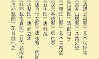 中国十大名画是:洛神赋图、清明上河图、富春山居图、汉宫春晓图、百骏图、步辇图、唐宫仕女图、五牛图、韩熙载夜宴图、千里江山图。中国十大传世名画是中国美术史的丰碑,华夏文明的巨著,是流动的历史、无声的乐章;承载着古老东方民族独特的艺术气质;用色彩记录了中华绵延五千年的悠久历史和横亘万里的锦绣河山。