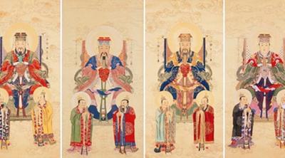 四御为道教天界尊神中辅佐“玉皇”的四位尊神,所以又称“四辅”。 他们的全称是:北极紫微大帝、南极长生大帝、勾陈上宫天皇大帝、承天效法土皇地祇。《修真十书》卷七《丹诀歌》中说:“九九道至成真日,三清四御朝天节。