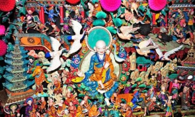 酥油花是用酥油制作的一种特殊形式的雕塑艺术,酥油花是塔尔寺的“艺术三绝”之一,它是用酥油作原料造出的各种佛像、人物、山水、亭台楼阁、飞禽走兽、花卉树木等艺术精品。每年农历正月十五展出时,由民族管乐器为主组成的花架乐队演奏出节奏缓稳、庄严肃穆的花架音乐乐曲,来烘托宗教气氛,并随着灯光的闪动;在含蓄典雅的音乐中,展示出酥油花雕塑的群体千姿百态。