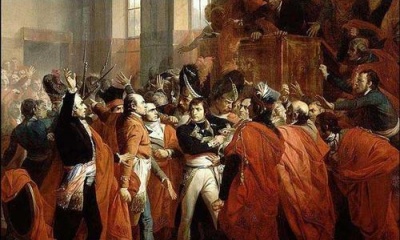 1799年11月9日,拿破仑以解除雅各宾派过激主义威胁法兰西第一共和国为借口,发动兵变,控制了督政府,接管了革命政府的一切事务,开始了为期15年的独裁统治。历史上称这一事件为“雾月政变“。