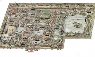 圆明园四十景,指的是圆明园中四十处景点。盛时的圆明园有长春园、绮春园、圆明园等一百多处园林风景群,四十景是指园内独成格局的40处景群,而每一景就是其中一座“园中园”或园林建筑群。《圆明园四十景图咏》,是根据乾隆皇帝的旨意,于乾隆九年(1744年)由宫廷画师唐岱等绘制而成的40幅分景图。四十景图为绢本彩绘,各幅分别附有工部尚书汪由敦所书乾隆《四十景对题诗》,字体一律为大臣奏章所用的宫廷管和体。