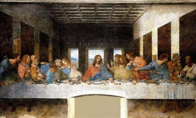 《最后的晚餐》是意大利艺术家列奥纳多·达·芬奇所创作,以《圣经》中耶稣跟十二门徒共进最后一次晚餐为题材。画面中人物的惊恐、愤怒、怀疑、剖白等神态,以及手势、眼神和行为,都刻画得精细入微,惟妙惟肖,是所有以此题材创作的作品中最著名的一幅。收藏于意大利米兰圣玛利亚感恩教堂。